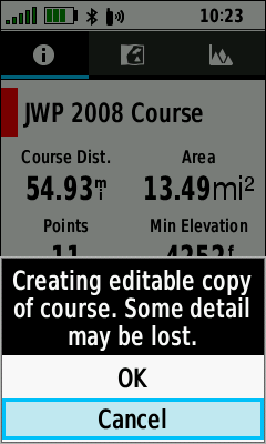 Select [Cancel] to abort | Select [OK] to continue | Scroll to view course points |