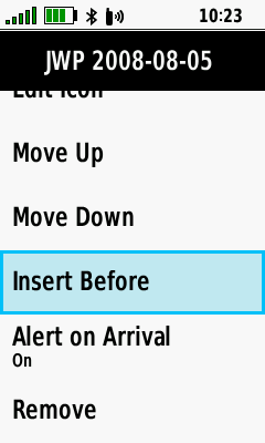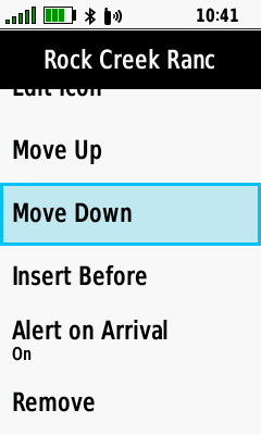 | [Move Down] | [Insert Before] | [Alert on Arrival] | [Remove] |
