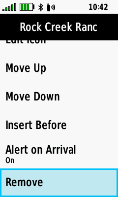 | Select desired course point | [Remove] | Course point is removed |