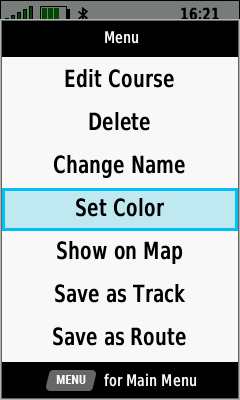 | (Menu) | [Set Color] | Choose desired color | Course color is updated |