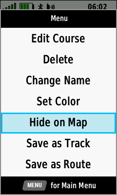 Course visible on map | (Menu) [Hide on Map] |