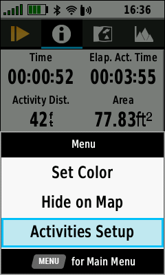 | Data Reset Menu | Toggle [Current Activity] Reset On/Off as desired |