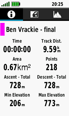 | Select desired track | Open Information Tab to view track statistics |