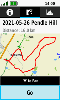 | Select desired track | Open Map Tab (Down) to pan map, or |