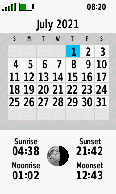 Select desired date to view Sun and Moon times |