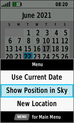 (Menu) [Show Position in Sky] |