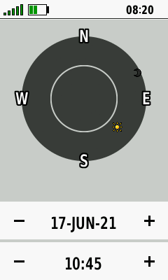 | Sun and Moon visibility from current location for selected date and time |