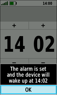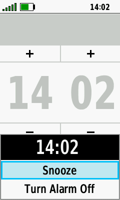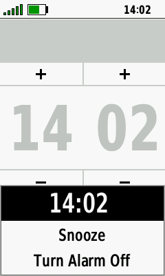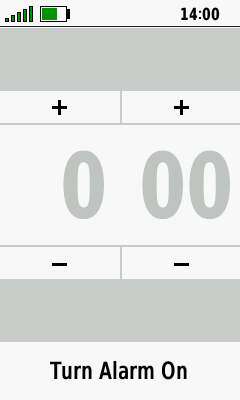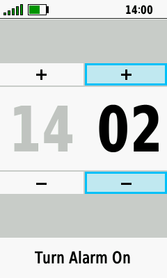 Use + / - to adjust hours Use + / - to adjust minutes Select [Turn Alarm On] to