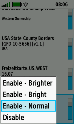 Current Map Display Brightness Selected |