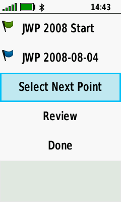 | [Select Next Point] | Choose category | Select desired location | Point added to end of course |