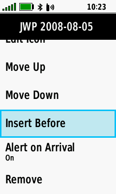 | [Move Down] | [Insert Before] | [Alert on Arrival] | [Remove] |