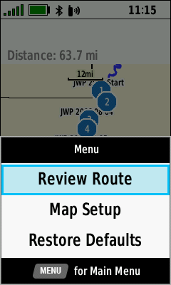 | [Review] | Course displayed on map | (Menu) [Review Route] |