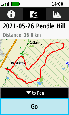 | Select desired track | Open Map Tab (Down) to pan map, or |