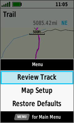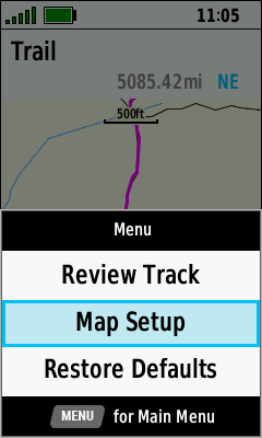 Track statistics are displayed | (Menu) [Map Setup] |