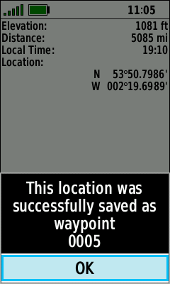 | Saved waypoint confirmation [OK] |