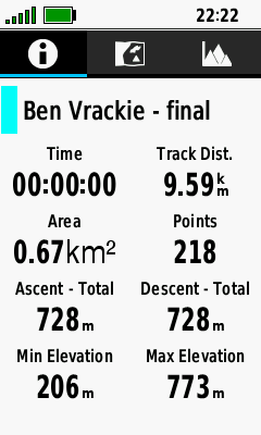 | Select desired track | Open Information Tab to view track statistics |