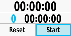 - The Stopwatch dashboard displays total lap time, current lap time, and lap count