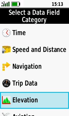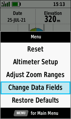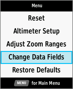 | (Menu) | [Change Data Fields] | Select Data Field to Change | Choose desired Category |