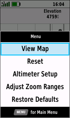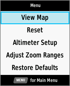 | [View Map] | [Reset] | [Altimeter Setup] | [Adjust Zoom Ranges] |