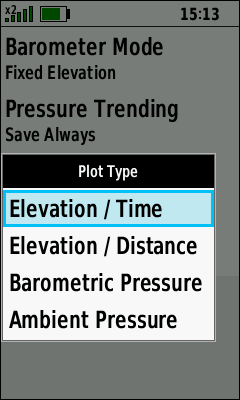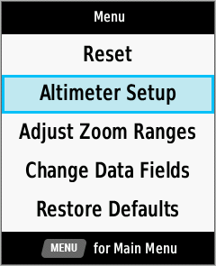 | (Menu) | [Altimeter Setup] | [Plot Type] | Select desired Plot Type |