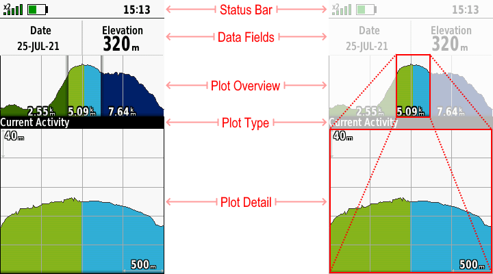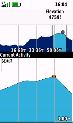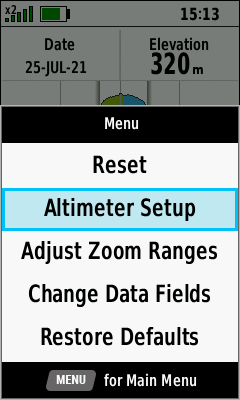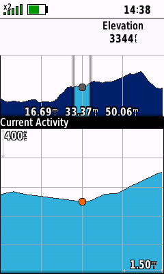 While Garmin may have chosen to label this application 'Altimeter', it is actually capable of plotting several useful data parameters, and could have just as easily been named 'Data Plot'. The Altimeter page can be used to review the elevation profile of saved activities and tracks as well as the currently active tracklog, to calculate the elevation plot of the path ahead to your current destination, or to review ambient and barometric pressure trends to help predict weather conditions!