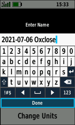 | [Save Track] | Edit track name if desired | [Done] | Saved track confirmation |
