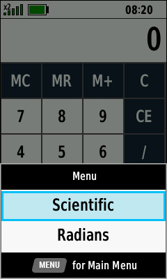 Standard and Scientific interfaces are available, with functional options for both Degrees and Radians.
