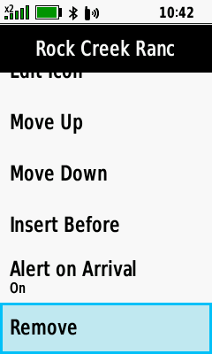| Select desired course point | [Remove] | Course point is removed |