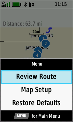 | [Review] | Course displayed on map | (Menu) [Review Route] |