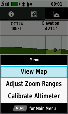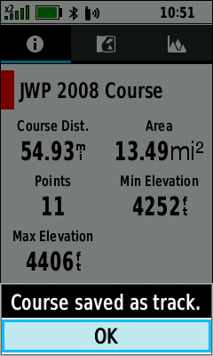 | Elevation plot displayed for selected course |