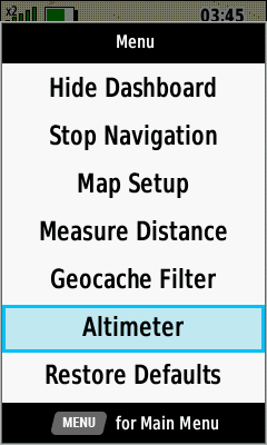| [Altimeter] | [Change Data Fields] | [Activate Stopwatch] | [Restore Defaults] |