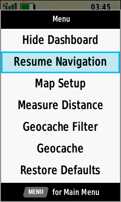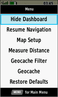 | [Show Dashboard] | [Hide Dashboard] | [Stop Navigation] | [Resume Navigation] |