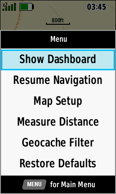 Select desired Map feature and press (Enter) |