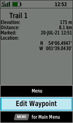 View waypoint details | (Menu) [Edit Waypoint] |