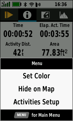 | (Menu) [Hide on Map] | Activity hidden on map | (Menu) [Show On Map] | Activity displayed on map |