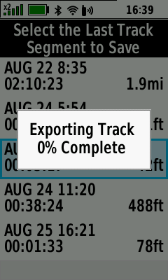 | [Done] | Track export begins | Track export complete | Saved activity confirmation |
