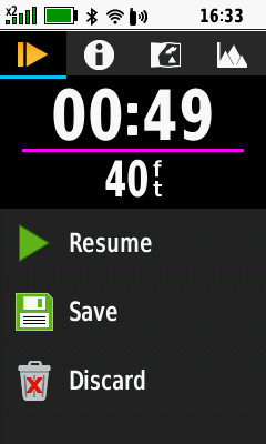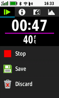 | Activity recording active | [Stop] current recording | Activity recording paused |