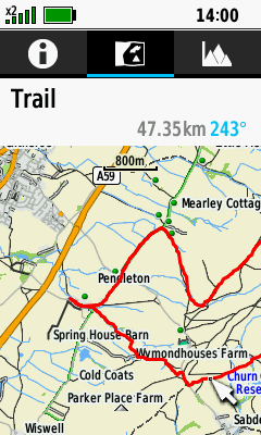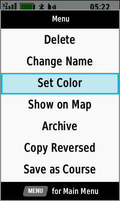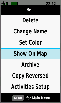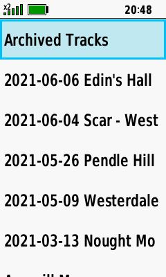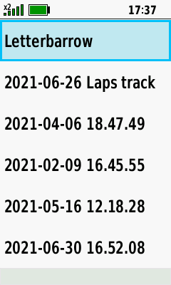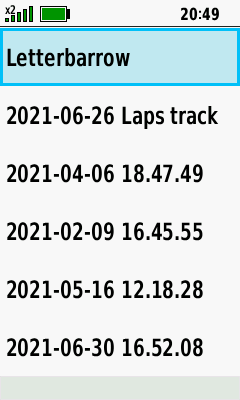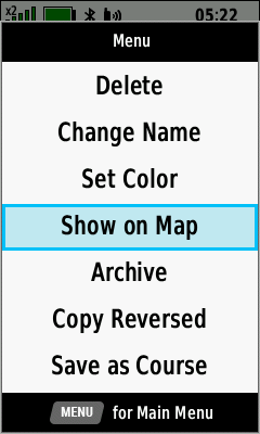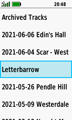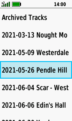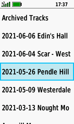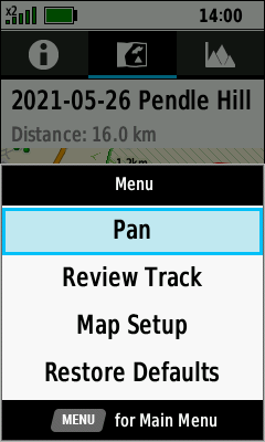 | Select desired track | Open Map Tab (Down) to pan map, or |