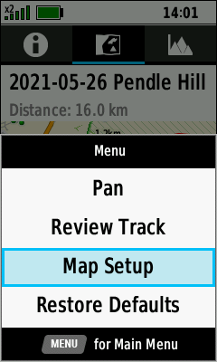 Track statistics are displayed | (Menu) [Map Setup] |