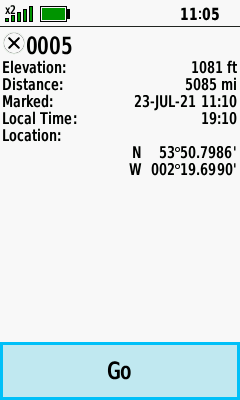 Saved waypoint information is displayed |