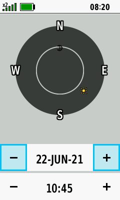 | Sun and Moon visibility from current location for selected date and time |