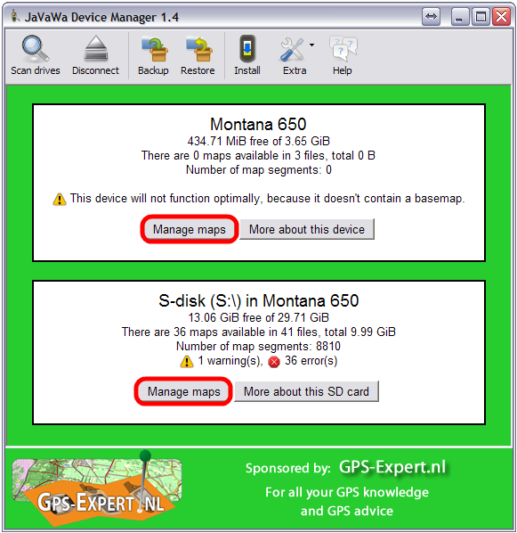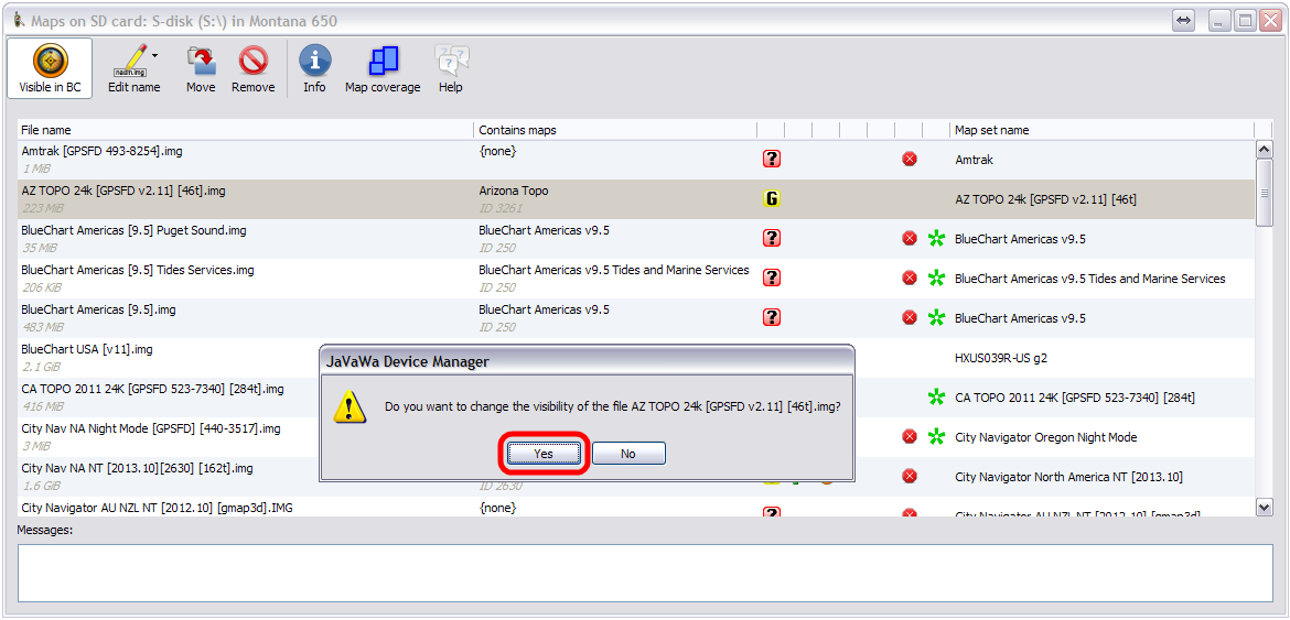 JaVaWa Device Manager (JDM) to enable/disable maps to be used with BaseCamp as desired.