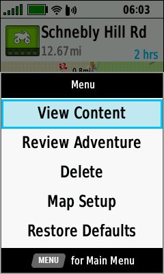 Select an Adventure Press (Menu) Select [View Content]