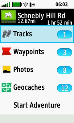 Creating and publishing an Adventure to share with other Garmin users is accomplished entirely within the Garmin BaseCamp application using data imported from your GPSMAP 67 GPSr and other devices. Remember to save all Track Logs, Waypoints and Photos you wish to include while creating your next Adventure! (non geotagged photos are not displayed in Adventures application)