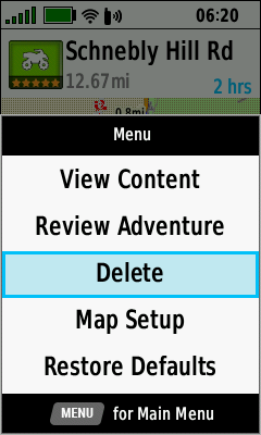 Select desired Adventure Press (Menu) Select [Delete]
