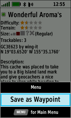 Press (Enter) Geocache information