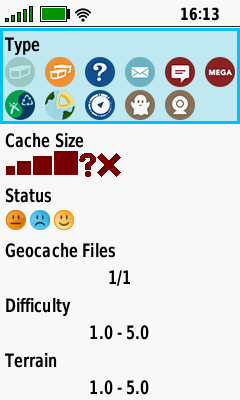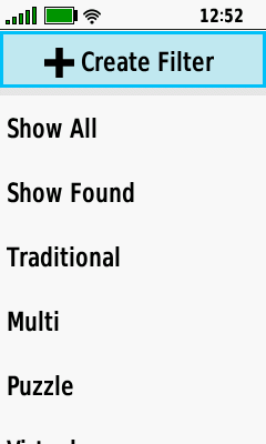 Cache Type Filters added Filtered Geocache List Filtered Geocache Map