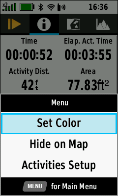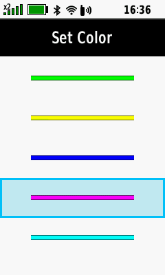 (Menu) [Set Color] Scroll available colors Select desired color Activity color is updated