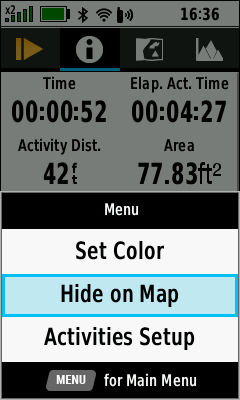 (Menu) [Hide on Map] Activity hidden on map (Menu) [Show On Map] Activity displayed on map