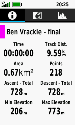 | Select desired track | Open Information Tab to view track statistics |
